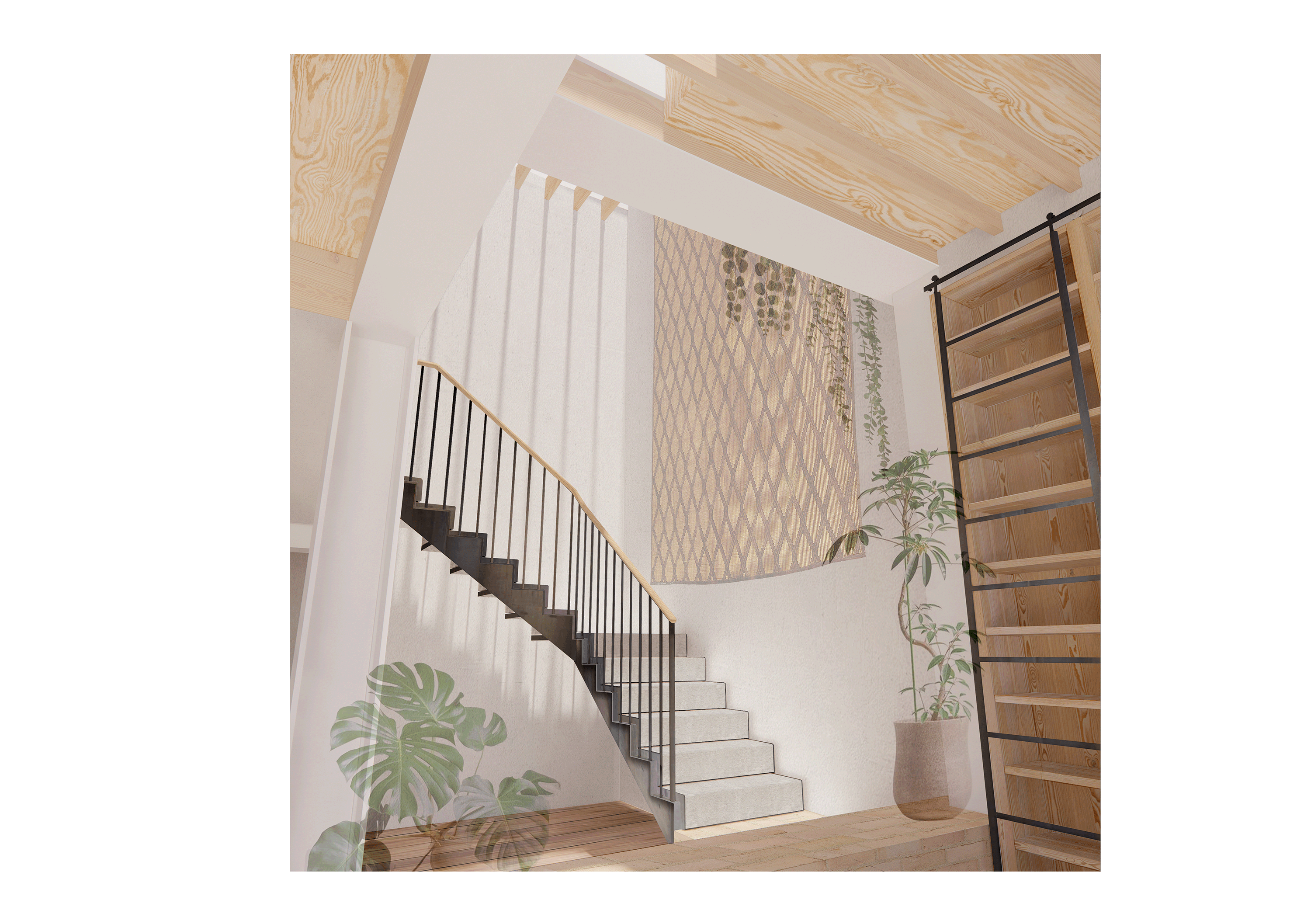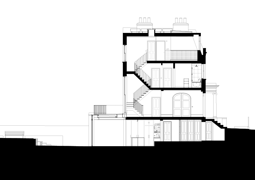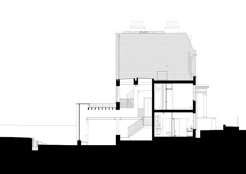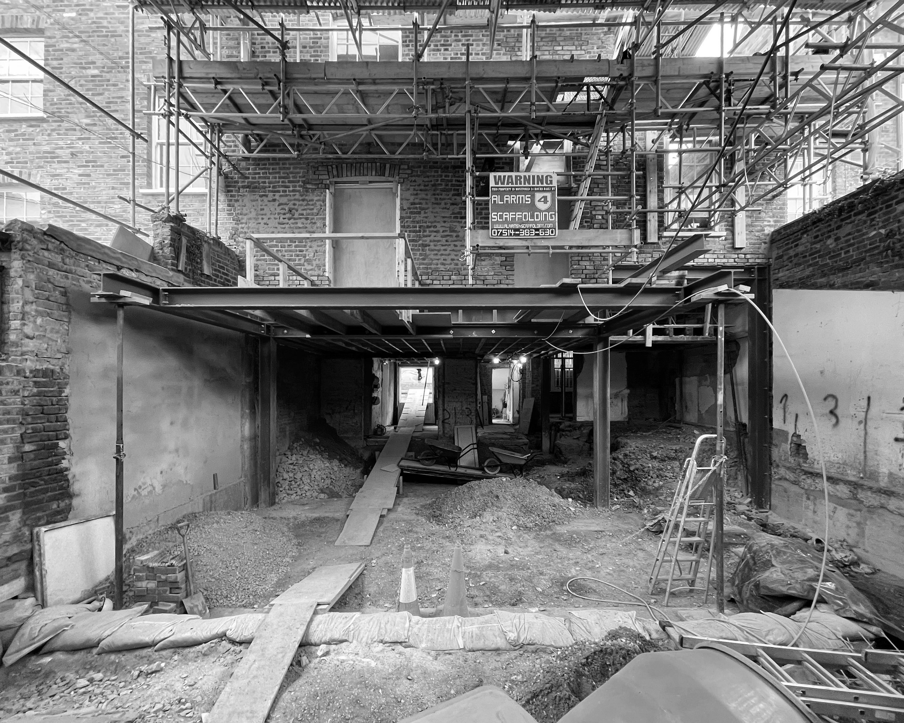 A web of structural steels opens up the previously warrenous lower ground floor. The connection between these works and the refurbishment of the upper floors is hinged around a new stairwell bringing light into the depth of the building.