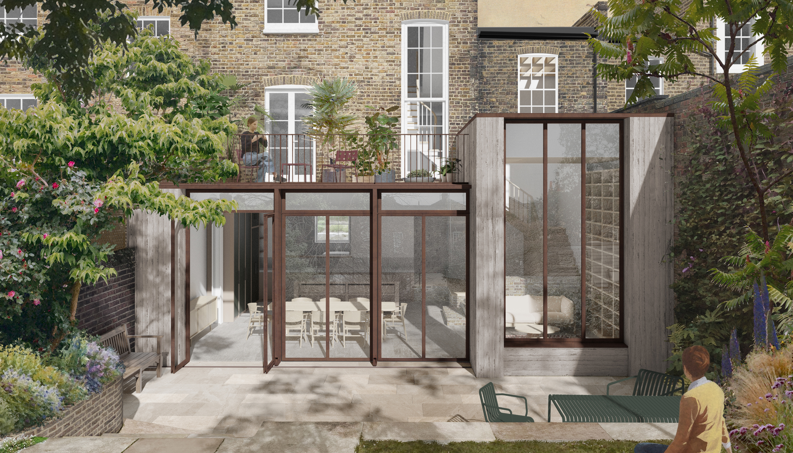 The full refurbishment and extension of an existing Hackney townhouse is in progress. The works are focused on a new board marked concrete and corten extension that provides generous connectivity to the garden as well as moments of repose and inhabitation in the oversize window seat.