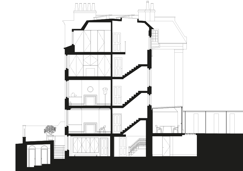 The refurbishment and extension of a listed Georgian townhouse provided an opportunity to introduce bold materials and interventions within the characteristically elegant setting of a late Georgian building. The emphasis of the proposals throughout was to bring these two characters into a complimentary balance.