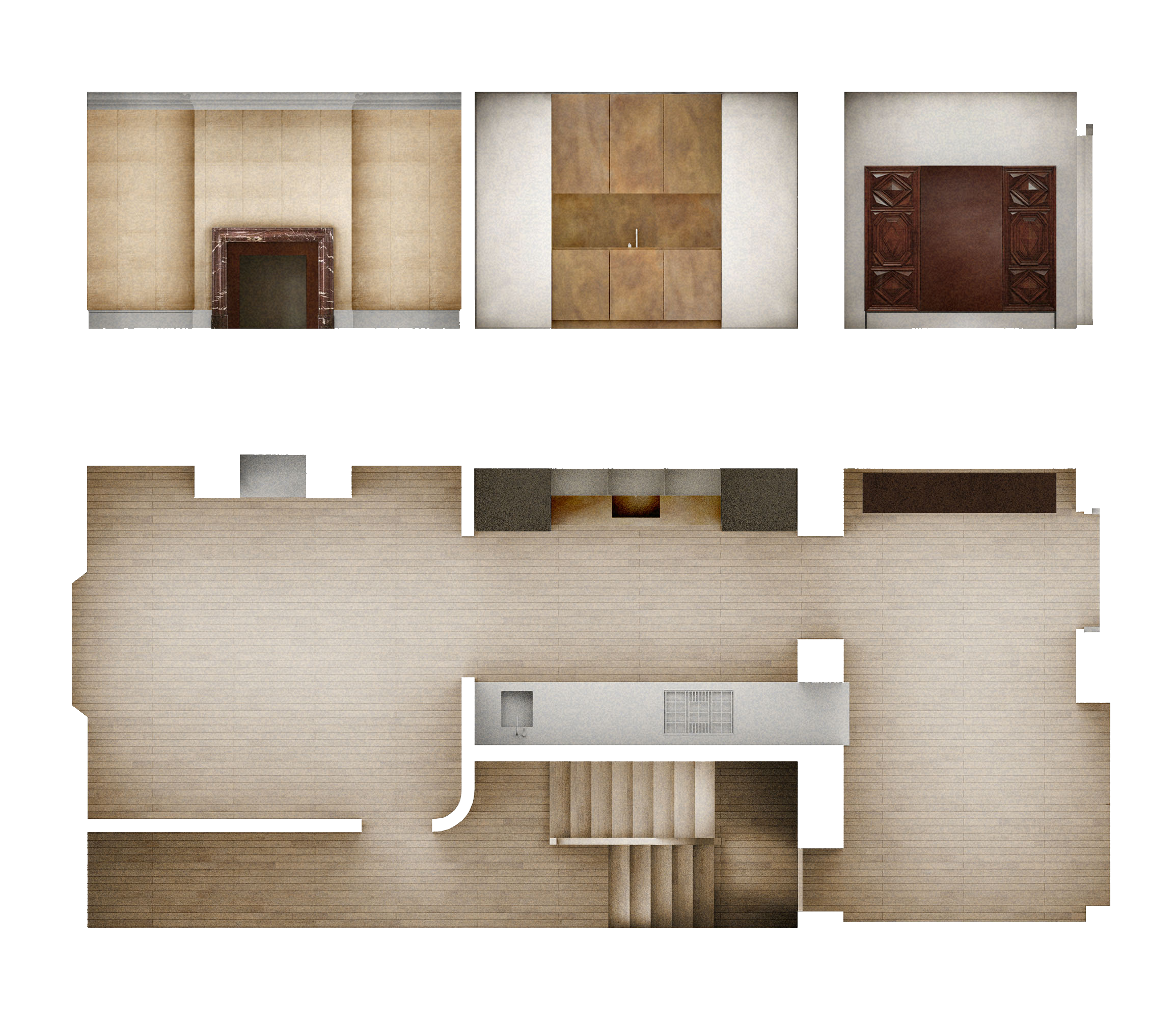 The upper floors of the existing building were composed of a series of smaller rooms and spaces. The proposals sought to retain and work with this aggregated plan form, but to link the smaller spaces through new connections and repeated use of specific materials and details.